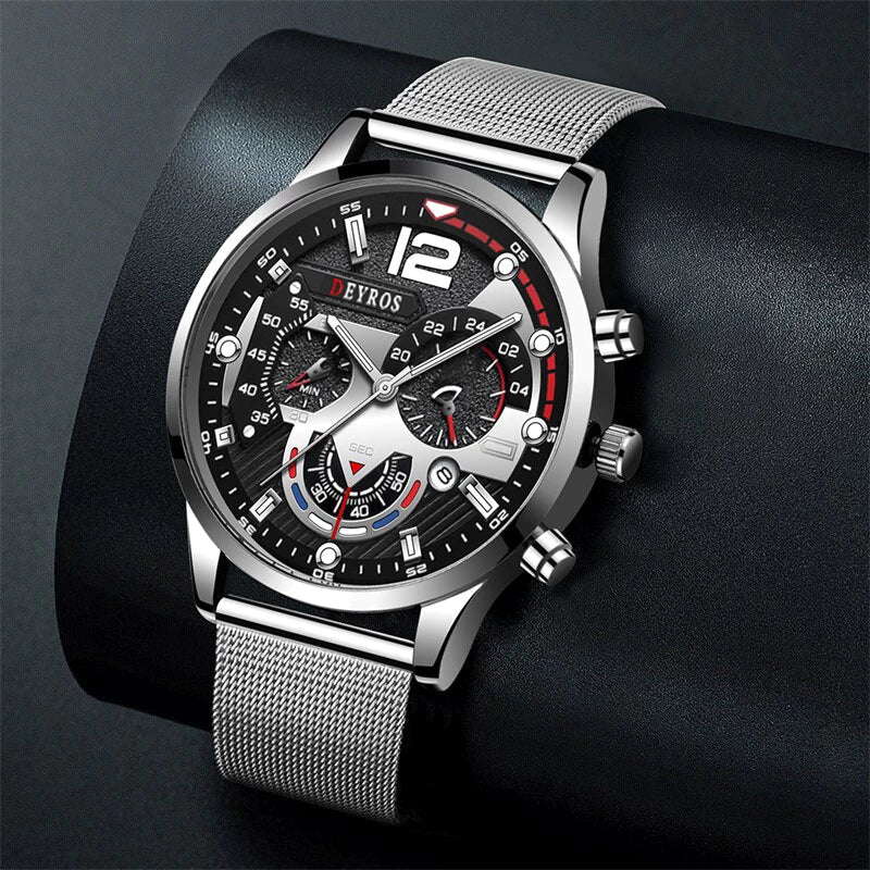 Relógio Masculino Geneva de Aço Inoxidável - Luxuoso e Casual
