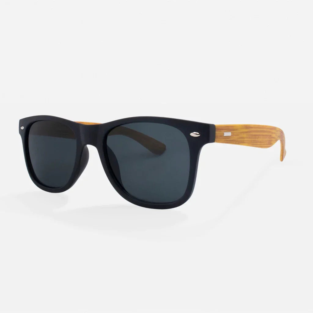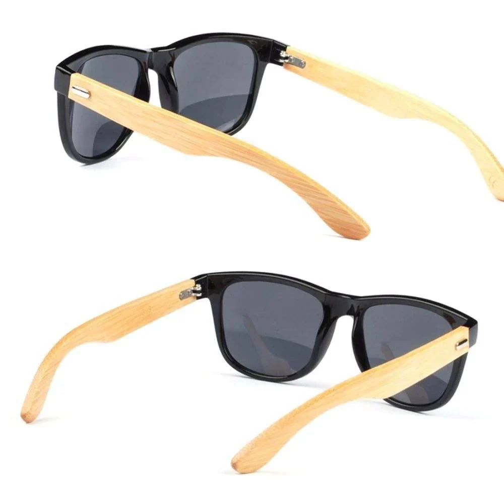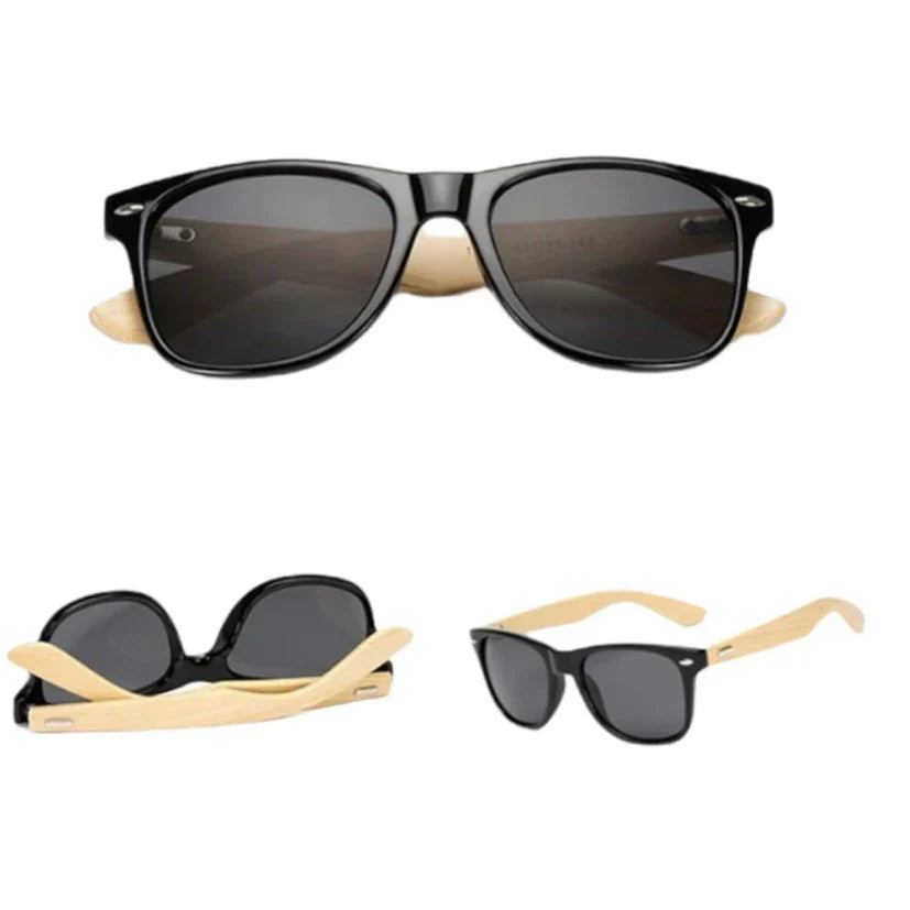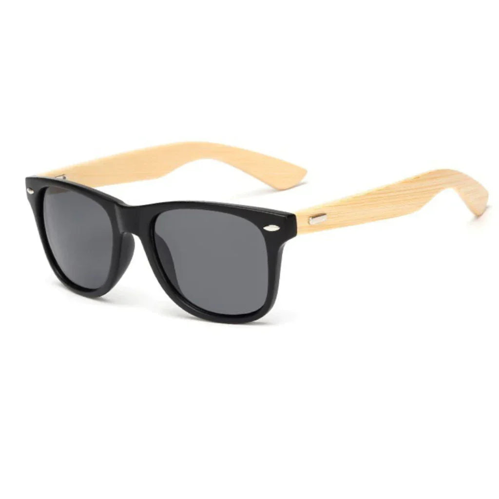 Óculos de Sol Preto com Hastes Amadeiradas – Modelo Tendência em Bambu